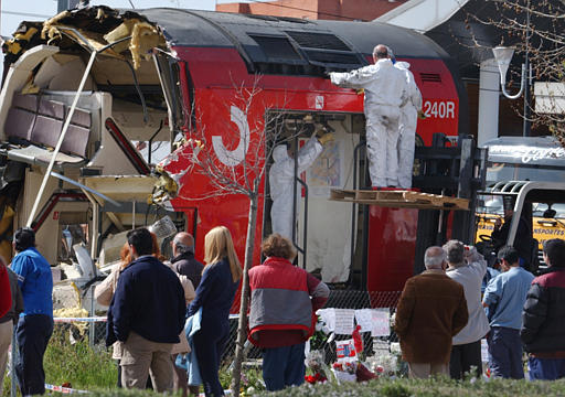 - La policía siguió investigando en los coches explotados del tren de El Pozo, tanto en la propia estación como en su posterior estancia en Vallecas y en su último destino en Villaverde. Tanto policías uniformados como otros vestidos con monos blancos estuvieron al menos hasta el día 15 trabajando en esos coches.
