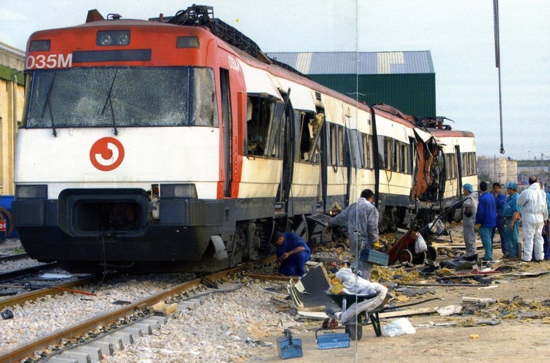 “Renfe inició ayer el desguace de los vagones de trenes que sufrieron los efectos de las explosiones en los atentados del 11-M”.