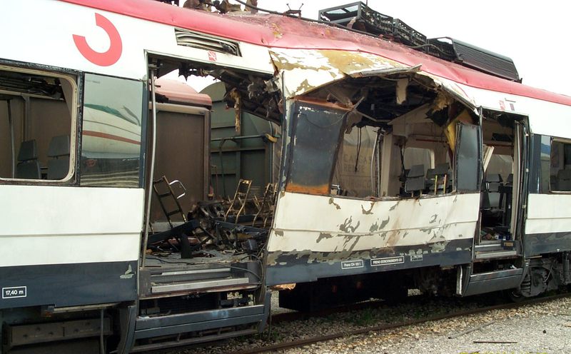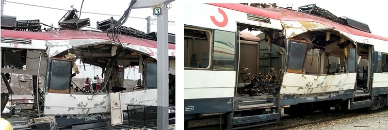 Es decir, en la misma noche del 11 al 12 de marzo todo el tren fue trasladado a la cercana estación de mercancías de Vicálvaro Clasificación. A continuación, el tren fue segregado en sus dos composiciones elementales de tres coches. La de cabeza, con los coches 1, 2 y 3, fue acondicionada y reincorporada al servicio normal de Cercanías. La de cola, la afectada por la explosión, fue posteriormente dividida a su vez, separando los dos coches no afectados por la explosión, los 95R y 189M, y trasladándolos a las instalaciones de Renfe en Cerro Negro (a la salida de Atocha), mientras que el coche 4 permanecía en Vicálvaro durante 6 meses antes de ser reparado y puesto de nuevo en circulación.