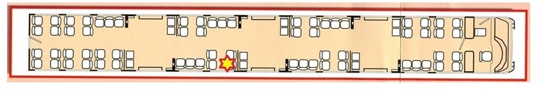 Este tren, al igual que los de Atocha y Téllez, estaba compuesto por dos “unidades” de tres coches cada una. En estos trenes, los viajeros pueden circular libremente por el interior de cada unidad, pasando por las dobles puertas de comunicación entre coches, siempre practicables. Lo que no se puede hacer es pasar por el interior del tren de una unidad a la otra, es decir, pasar entre el coche 3 y el 4, pues en los extremos de cada unidad hay sendas cabinas de conducción, sin acceso para los viajeros.