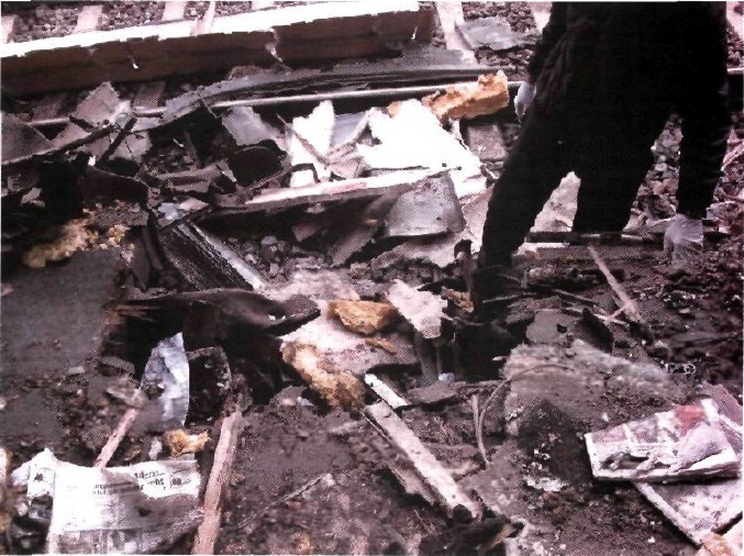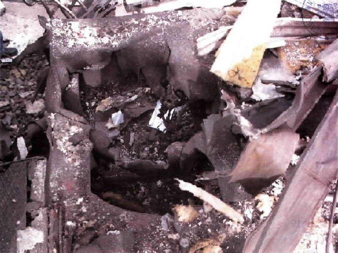 En el punto donde había explosionado el artefacto se localizó un cráter irregular de, aproximadamente, 80 cm de diámetro.