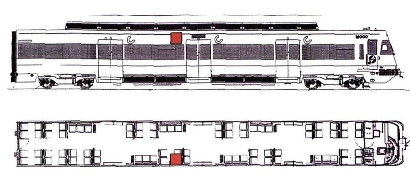 El vagón disponía de tres puertas de acceso por cada costado, que distribuidas uniformemente, lo compartimentaban en cuatro zonas de asientos y tres espacios de entrada y salida con cuatro asientos plegables en cada uno de ellos, dos por cada costado.