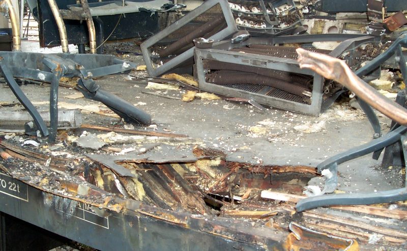 El área de estragos máximo ocupó una zona de aproximadamente seis metros en la longitud del vagón, entre las puertas 2 y 3.