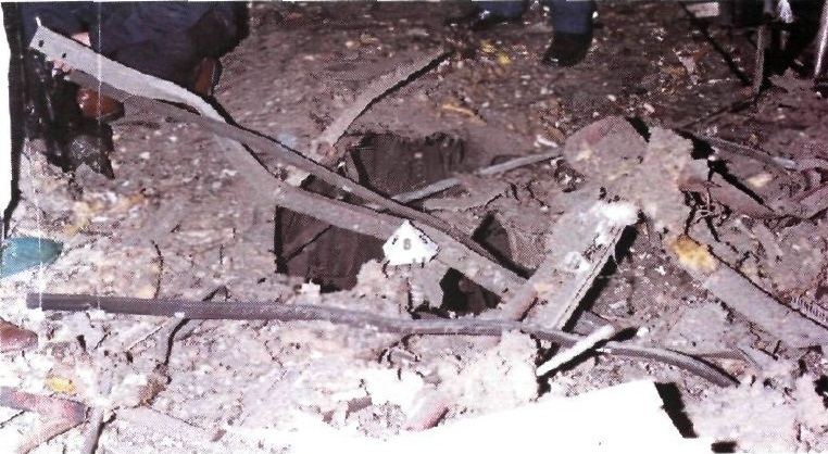 La explosión del artefacto, produjo, además de un cráter en el punto donde fue colocado, de aproximadamente 70 x 40 cm