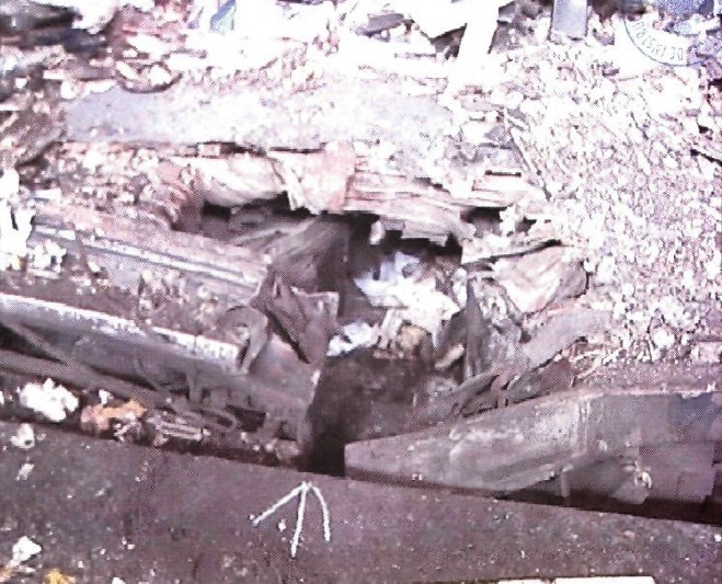 En el suelo del vagón, concretamente en el lugar donde estaba el artefacto, se localizó un cráter irregular, de aproximadamente un metro de diámetro