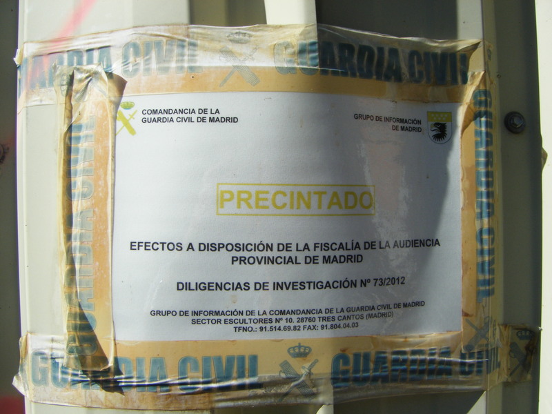 – La Guardia Civil precinta el cobertizo en el que se guardan los restos, junto al cual se dispone una vigilancia permanente. Durante varios días se mantiene esa la vigilancia ante el precintado cobertizo. En mayo, la vigilancia se limita a la entrada de los talleres
