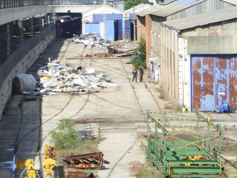 – En los antiguos talleres están trabajando perfectamente identificadas una empresa de alquiler de módulos para oficinas y otra dedicada a la gestión de residuos. Al parecer Adif ha decidido continuar las labores de demolición, esta vez de forma oficial y legal