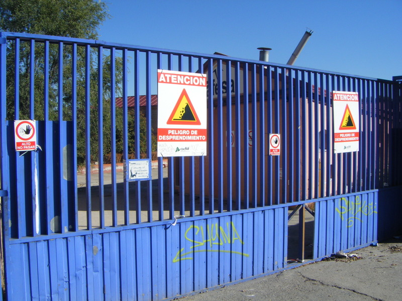 La reacción a lo que estaba pasando en las instalaciones recuperadas por Adif, a las furtivas entradas que era evidente que se estaban produciendo, fue la colocación de unos carteles de “peligro de desprendimiento” en las puertas metálicas de entrada a las instalaciones. Se asumía por lo tanto que se estaba entrando allí y no se impedía, sino que se cubría la responsabilidad de posibles accidentes advirtiendo del peligro. Así que se dejaba hacer con la mayor naturalidad.