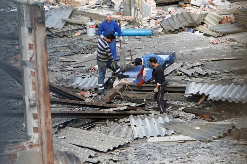 El 10 de enero seguían trabajando ambas empresas. Había avanzado la destrucción de las naves. Había desaparecido el cartel de peligro de desprendimientos que se había identificado públicamente como el mismo que se colocó inicialmente, que luego desapareció con las puertas y que fue vuelto a colocar.