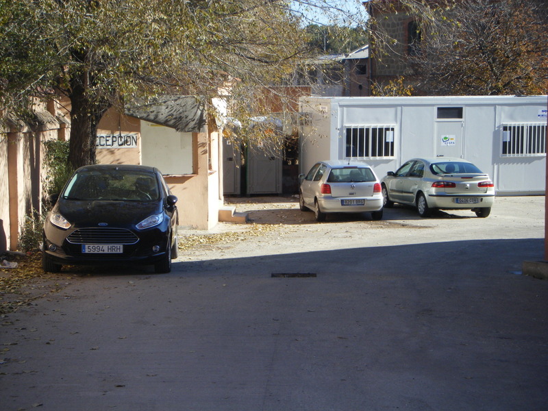 Y tras la puerta de entrada, hay otras novedades: Se pueden ver tres vehículos aparcados ante unas casetas prefabricadas antes inexistentes y carretillas con otros signos de que se lleva a cabo alguna actividad.
